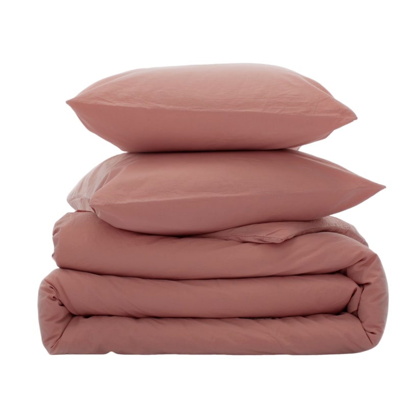 Relaxed Percale Duvet Cover Set Super King Size Coral Pink Conscious Convert Wolf Badger